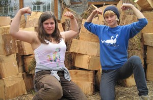 Casey and Sarah, flexing those muscles after an exhausting day of non-stop wood hauling and heaving. An extra thanks to them as I burn that same wood now to keep warm.