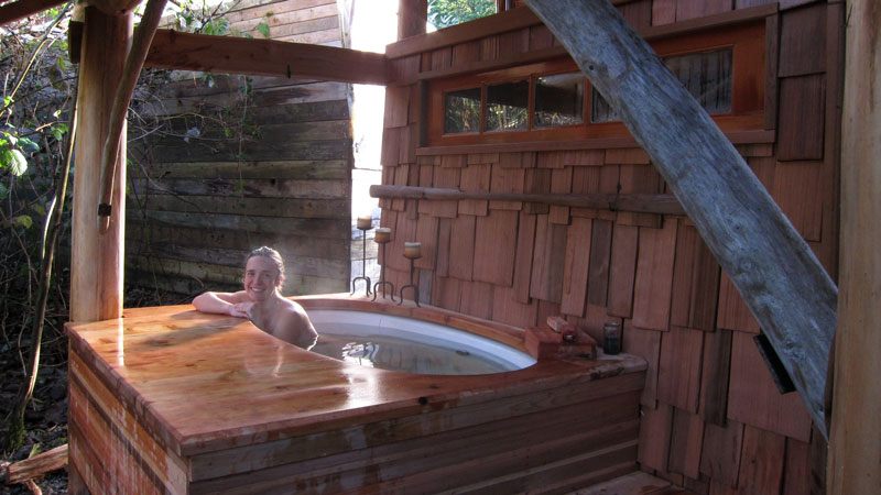 The key component of the bath house---the soaking tub. Photo courtesy of Brian, with many thanks to Leann for modeling.