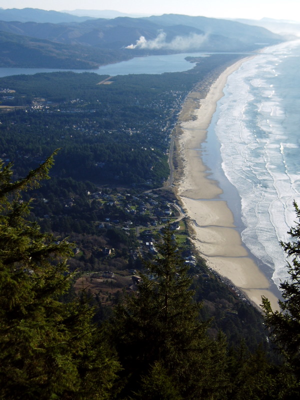 The view from the top of Neahkahnie Mountain, looking out over Manzanita, Nehalem and beyond.